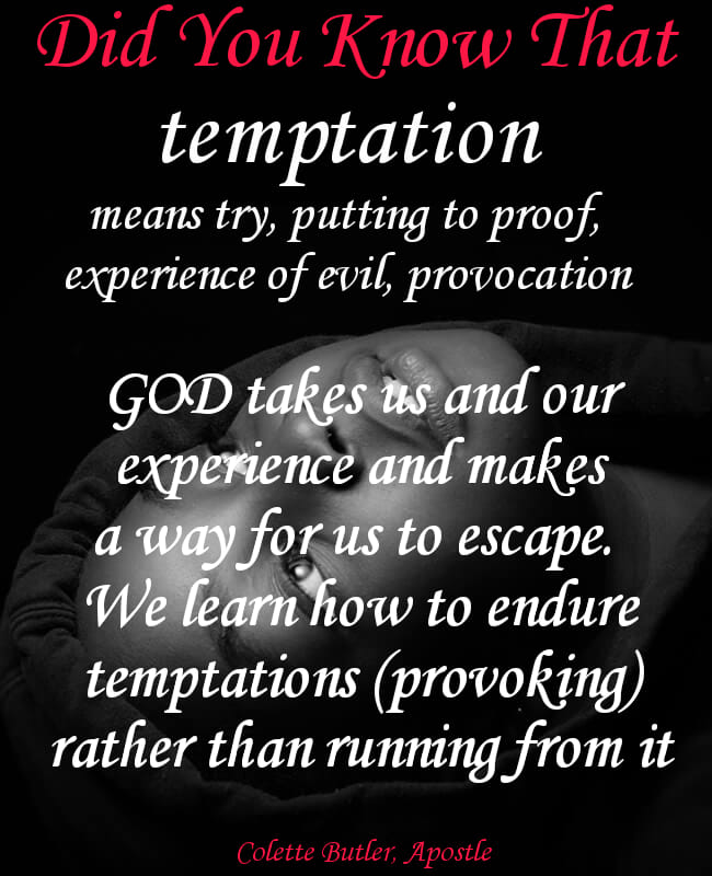 There hath no temptation taken you but such as is common to man: but GOD is faithful, who will not suffer you to be tempted above that ye are able; but will WITH the temptation also make a way to escape, that ye may be able to bear it. I Corinthians 10:13