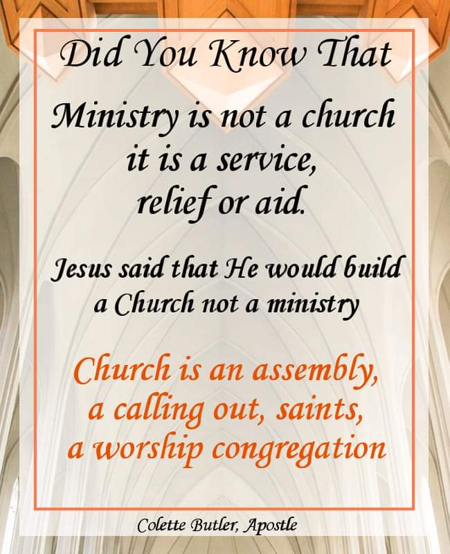 We have draw so far away from the Word of GOD that we accept these deceptions of the world. GOD said that HIS church should be called a House of Prayer but man calls them ministries. Ministries are not churches but services inside a church to provide relief for the people of GOD. We gotta stop calling night day and day night. We must become diligent in shining a light on deception and to pray that the people eyes become enlightened and that they begin to earnestly pray against deception and pray for discernment.