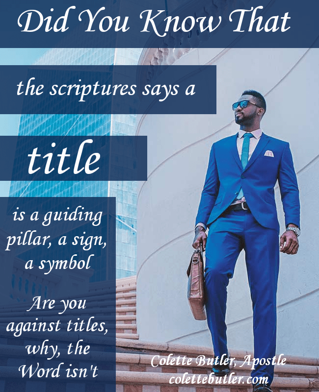 There are a lot of people that have issues with people using titles but this is not according to knowledge. The Word of GOD is not against titles, rather people aren’t studying. We as spiritual leaders have all preached what we were taught rather than actually studying the passage for ourselves.