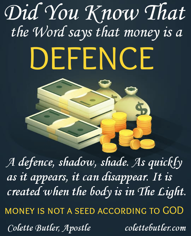The truth of the matter is, when you study money according to the scriptures, the scriptures tells you exactly what money is. In Ecclesiastes the Word says, “For wisdom is a defence, and MONEY is a defence: but the excellency of knowledge is, that wisdom giveth life to them that have it. There is NO scripture in the Word of GOD that says money is a seed. The seed is in face the Word of GOD.