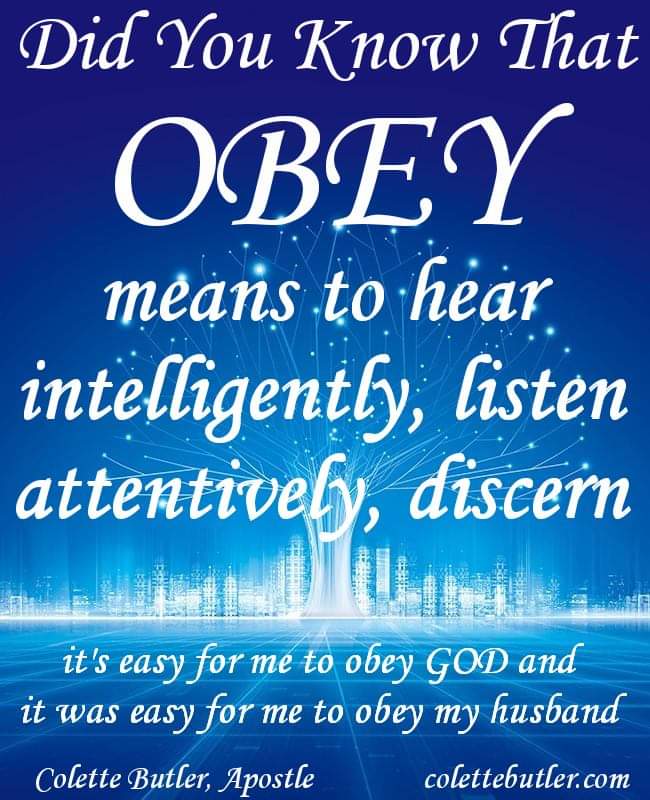 So, let us look at what the word “obey” really means. It means to in the direction to hear to persuade, trust, have confidence be confident. It is not a word that means to bow down and kiss someone’s behind nor is it a word to be afraid of. Obey is a beautiful thing when it comes to marriage. To obey means that you trust someone, you have confidence in them, you are in the direction to hear and you being attentive is to obey.