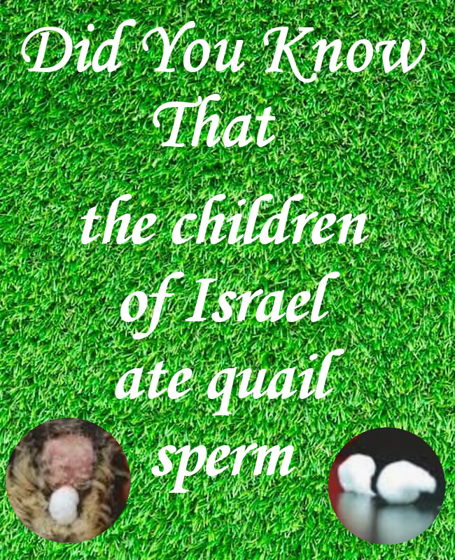 So, who really did eat quail sperm? The children of Israel for 40 years and called it manna. Manna from heaven, sperm from the quails in the sky.