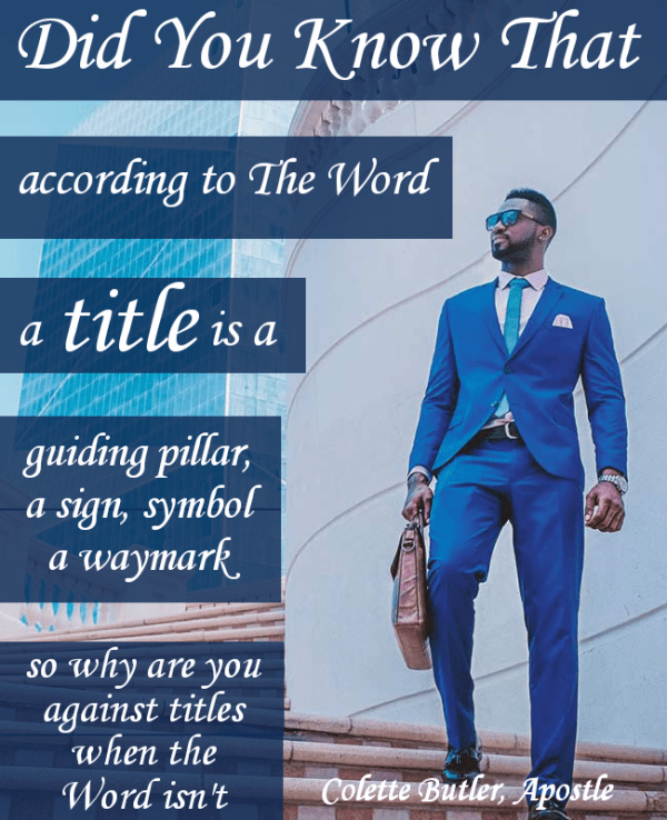 When you study the Word of GOD, it puts many things into perspective. Studying allows you an opportunity to know the truth but you are the one that has the faith, power, understanding to receive truth or reject it. The truth about titles is that they are meant to be guiding pillars, signs, symbols, waymarks... Continue Reading →