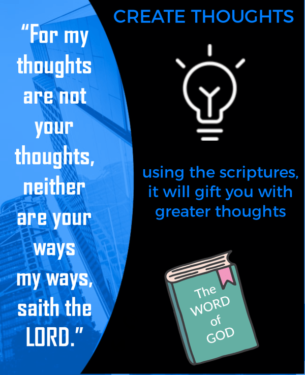 Our thoughts are derived from our senses. We've touched, saw, smelled tasted or hear something that gives us our thoughts. When you have a thought, an idea from something other than your 5 senses that is a thought from GOD. GOD'S thoughts are higher than man's thoughts. In order for each of us to increase... Continue Reading →